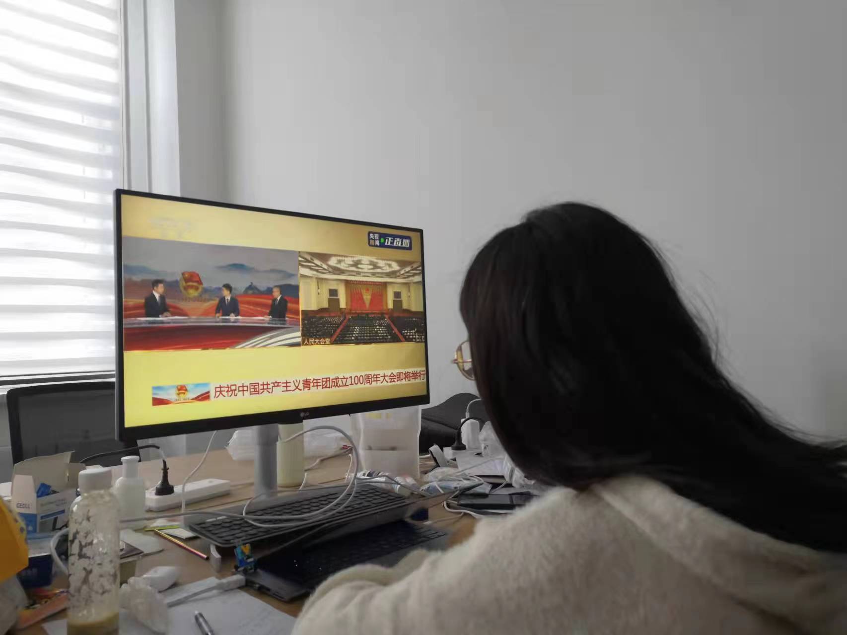 在研究院组织部署下,院内北京交大派驻、国教学院(唐山)、职业教育、伊工大项目全体同学同步收看大会实况,共庆共青团成立百年。在公寓、在实验室、在家中……不同的地点,年轻的共青团员们感受到了同样的鼓舞,纷纷表示:“总书记说,追求进步是青年最宝贵的特质,也是党和人民最殷切的希望。作为新时代的共青团员,我们更要刻苦学习、锐意创新、立足岗位、苦练本领,追求政治进步,更加紧密的团结在以习近平同志为核心的党中央周围,发扬共青团百年光荣传统,为党和人民事业贡献自己的力量!”