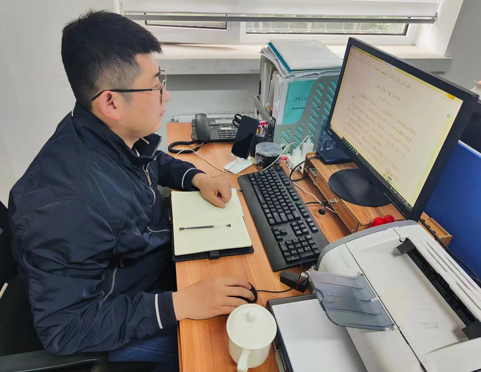 近日,为深入学习贯彻习总书记考察期间的重要讲话精神,唐山研究院党支部积极响应学校党委号召,根据唐山市疫情防控相关要求并结合研究院的实际情况,组织全院党员教职工以在办公室自学的方式,认真研读校党委宣传部下发的《宣传通讯》学习材料,深刻领悟习近平总书记讲话的核心要意和博大内涵,并分享各自的心得体会。
