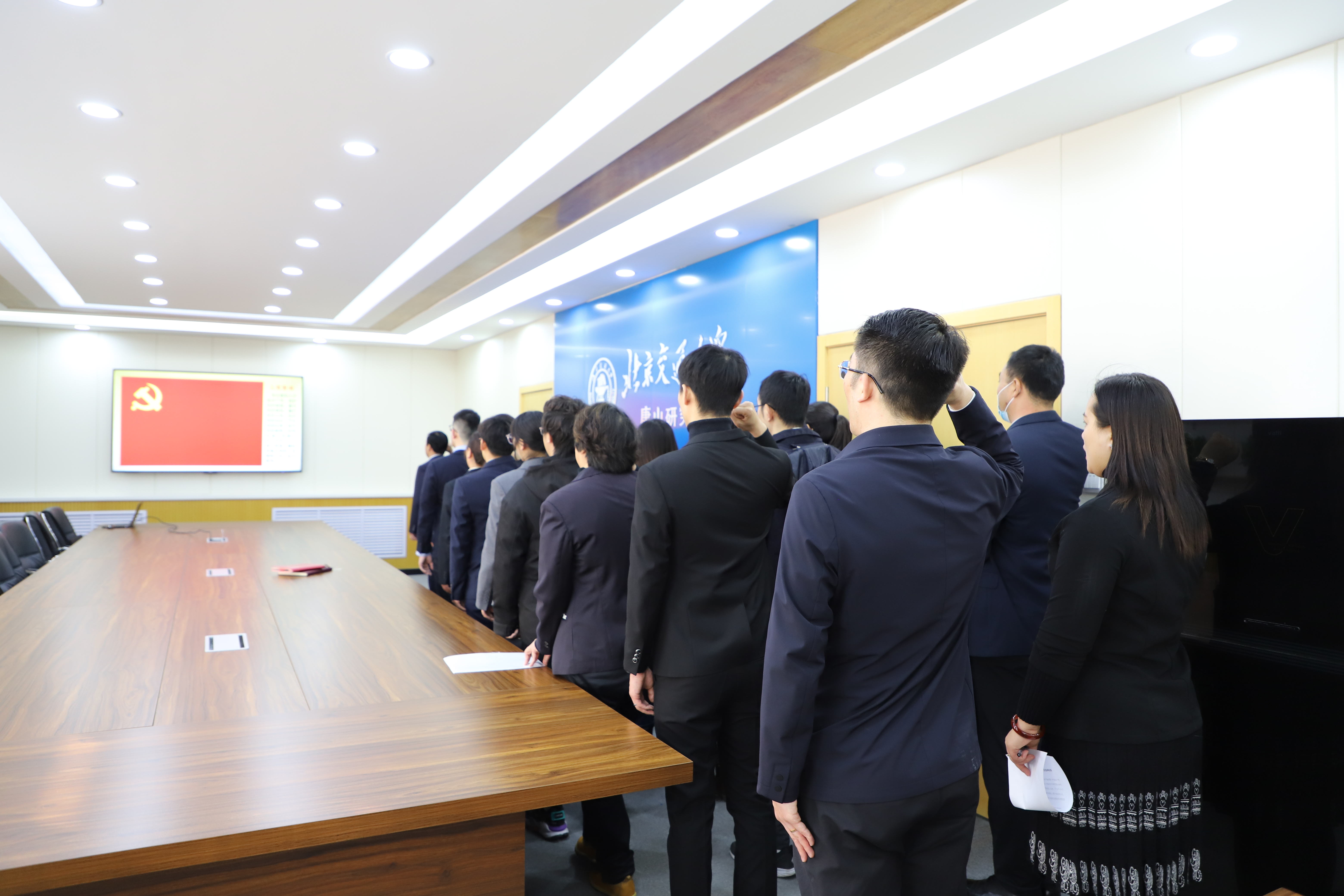 王大勇带领研究院全体党员重温入党誓词。26名党员佩戴党徽,精神飒爽,在庄严的党旗下重温入党誓词,宣誓铿锵有力,振奋人心,更加坚定了全院党员“不忘初心,牢记使命”“为共产主义奋斗终身,随时准备为党和人民牺牲一切,永不叛党”的理想信念与决心。