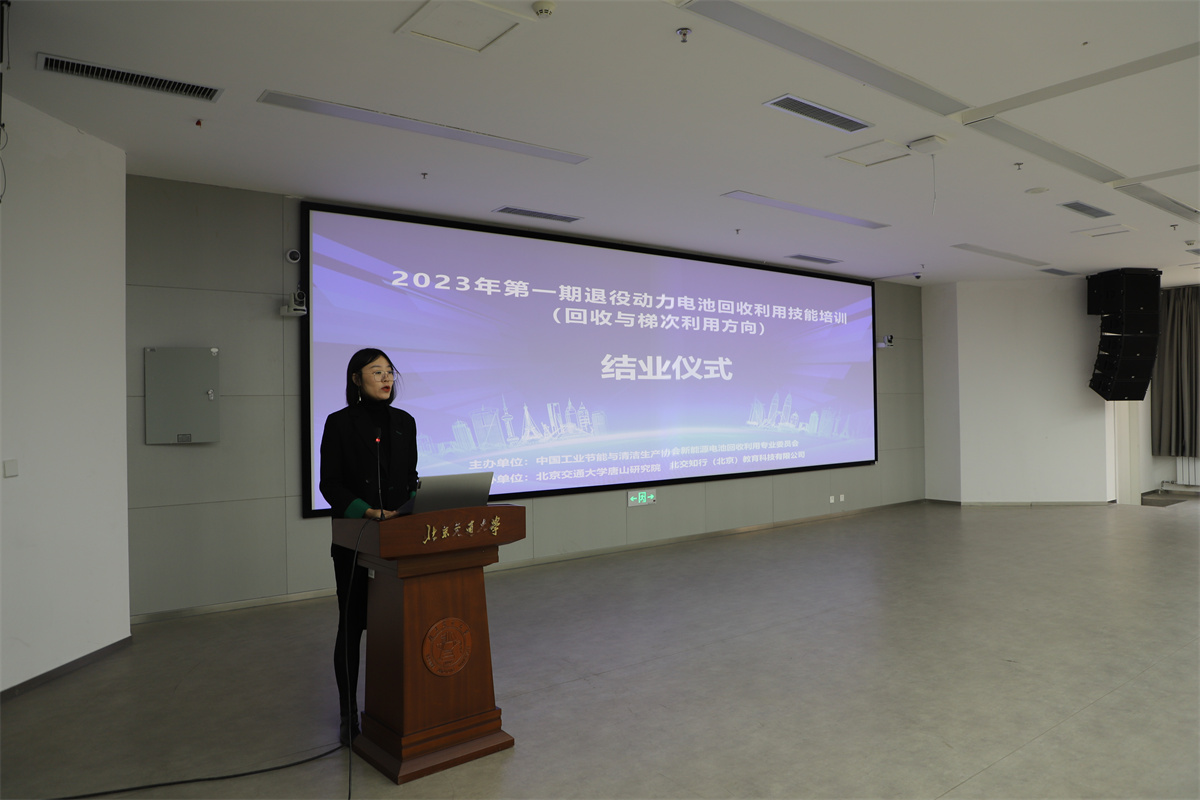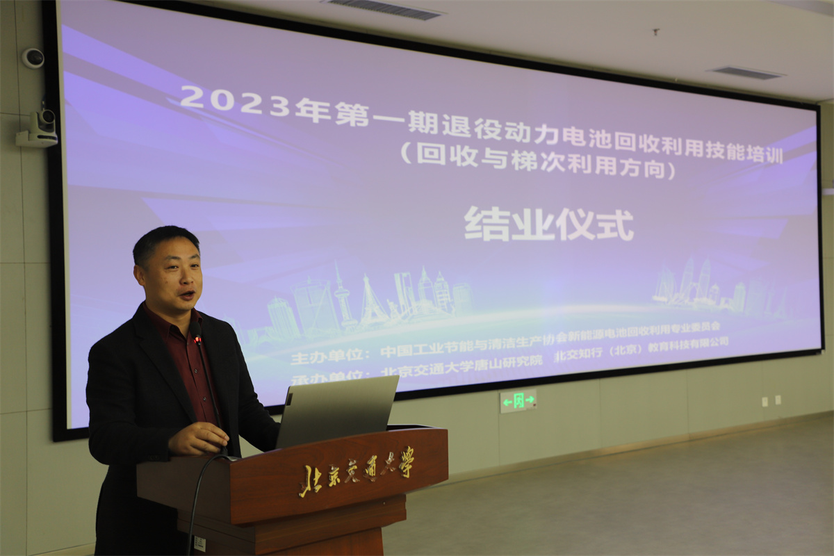 此次培训由中国工业节能与清洁生产协会新能源电池回收利用专业委员会主办,北京交通大学唐山研究院和北交知行(北京)教育科技有限公司承办,结训后将根据首批学员结业后的反馈信息不断改进课程设置,助力退役动力电池回收再利用产业人才队伍建设,为绿色高质量发展做出贡献。