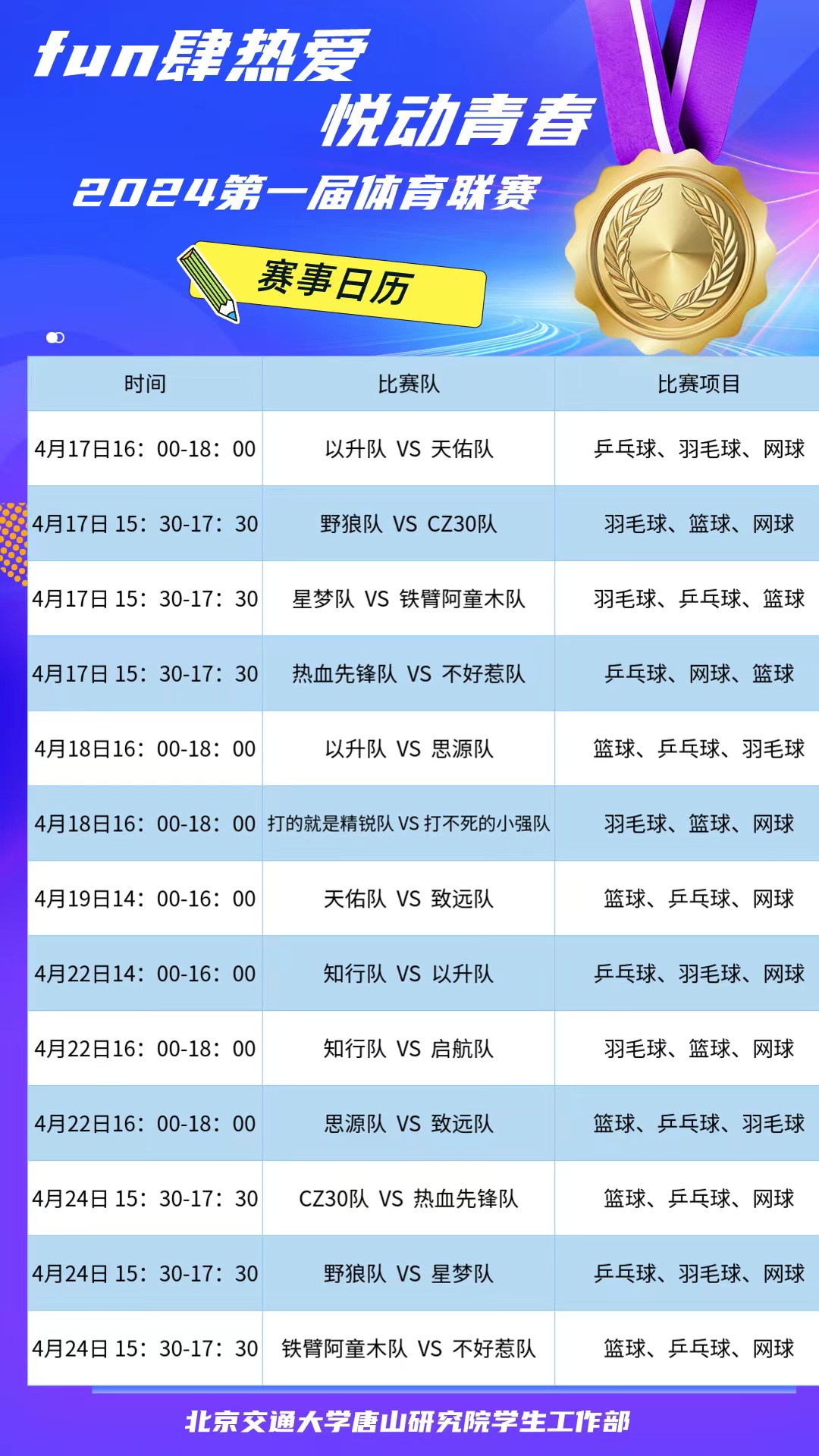 2024年唐山研究院第一届体育联赛赛事日历1