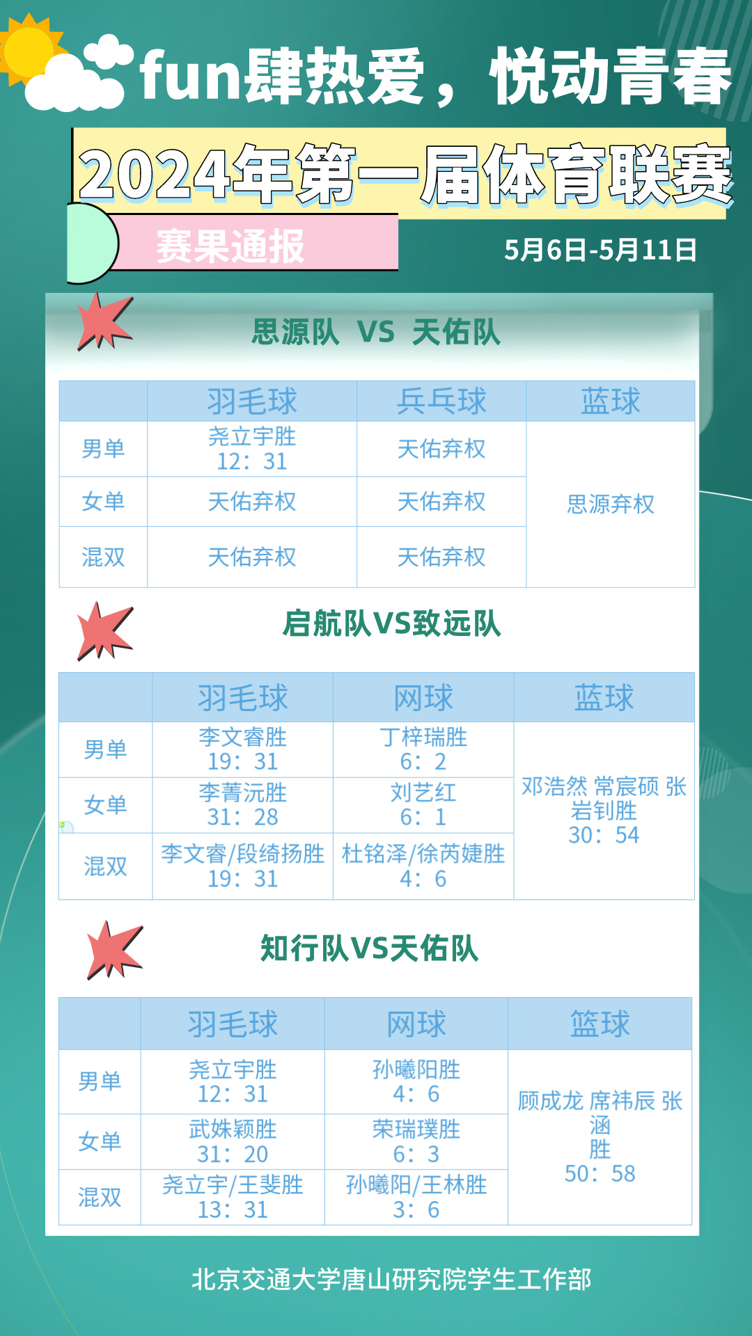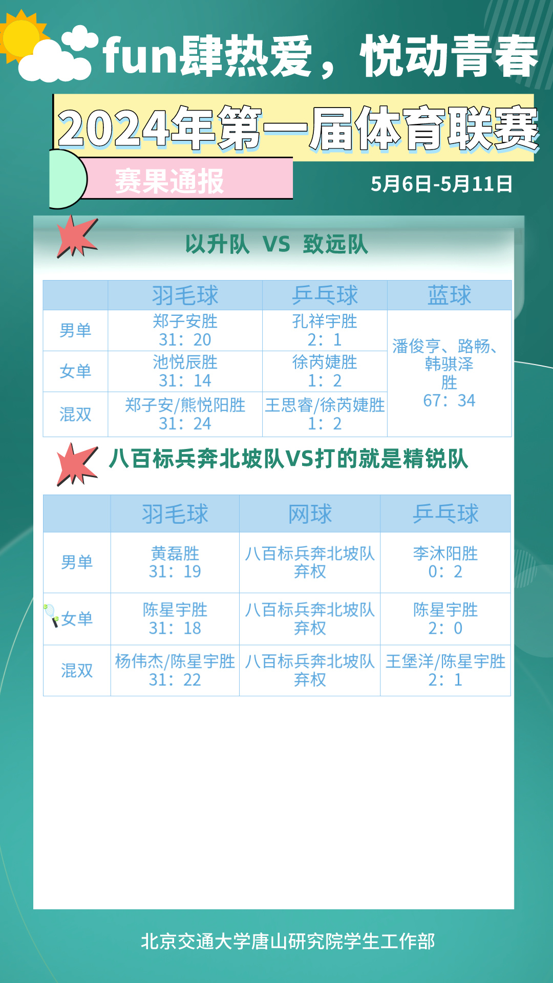 2024年唐山研究院第一届体育联赛赛果通报、积分榜2