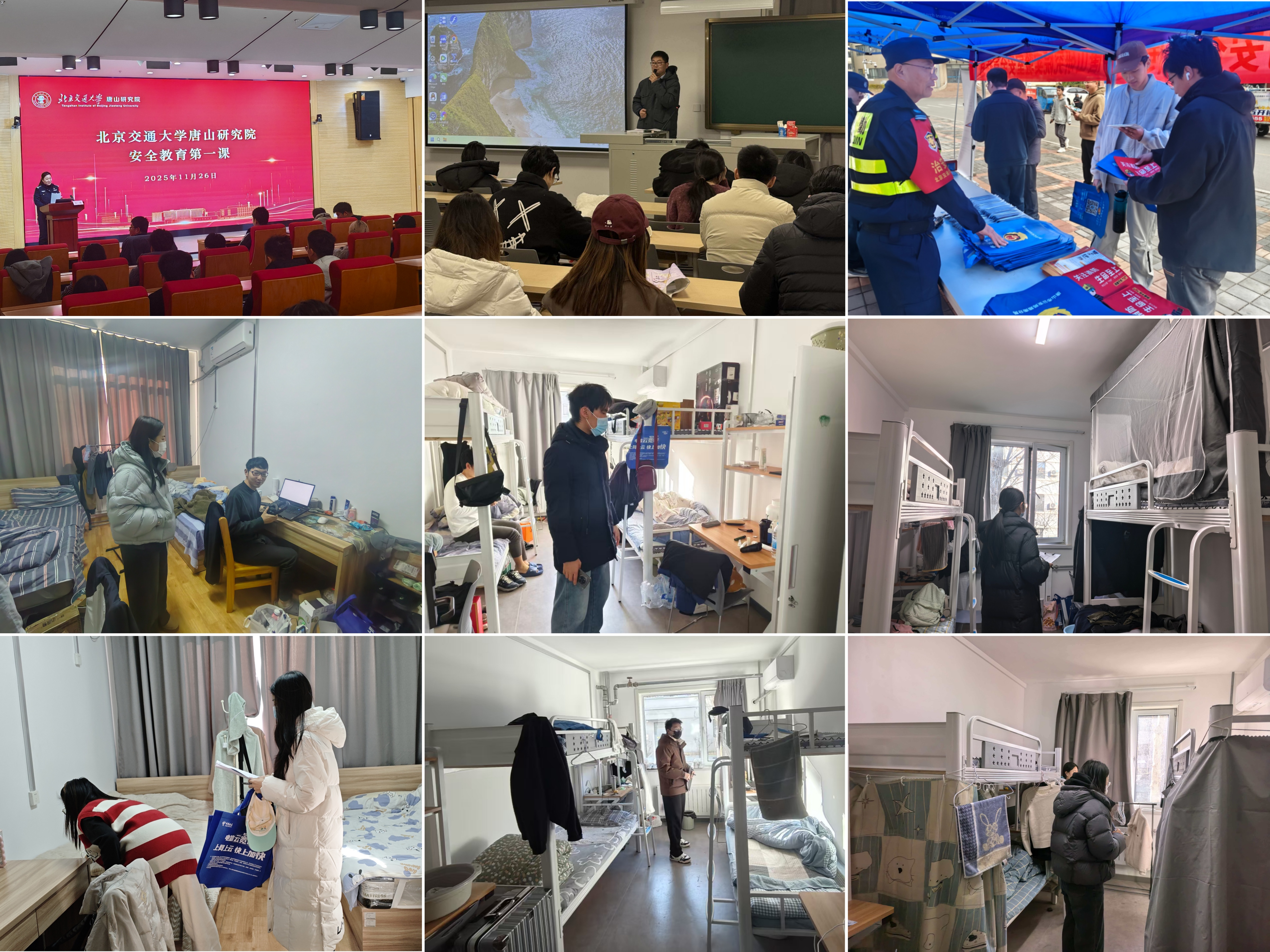 11月7日举办消防知识宣讲与互动实践,通过问答和灭火器实操推动消防知识入脑入心;11月17日,对硕士研究生班长、团支书、党支部书记、纪检委员近百名学生骨干进行安全纪律培训,系统学习《学生手册》中的安全规定;11月26日,举办“防范电信诈骗”主题安全教育讲座,特邀唐山市路南区公安分局广场派出所副所长王蕊深入讲解电信诈骗的常见套路、识别预防技巧及事后应对措施,并结合宿舍防盗、规范充电等生活实际进行安全提醒;12月4日,研究院对全院宿舍进行安全大检查,排查安全隐患,筑牢校园安全防线。