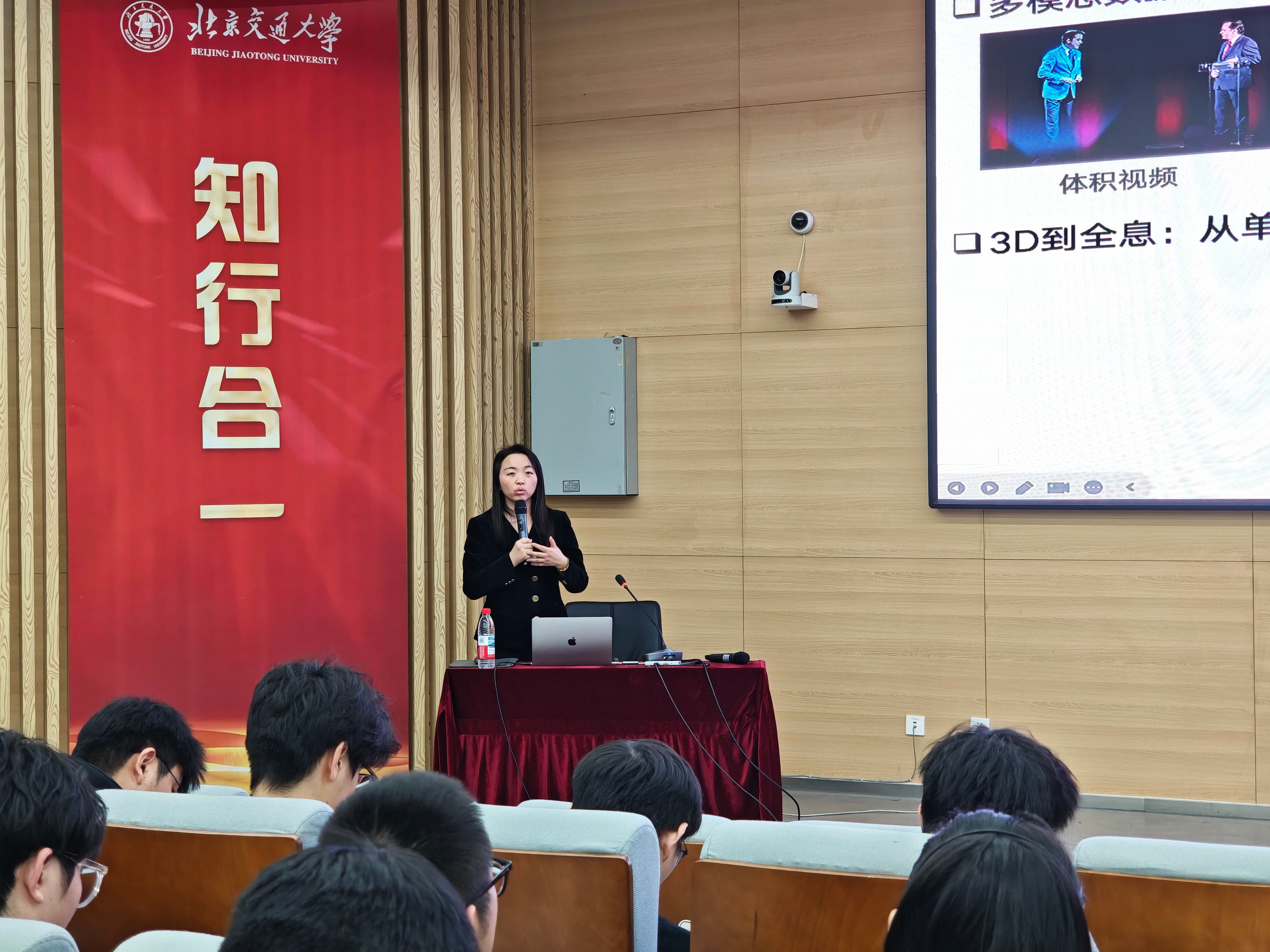 讲座中,秦志金重点分享了其团队在语义驱动沉浸式通信领域的最新突破性研究成果,包括“基于3DGS的多视角视频联合语义编码”与“基于Token的点云语义-信道编码及调制联合优化”等前沿技术,为实现在元宇宙、全息通信等未来沉浸式体验中更加高效、逼真的效果提供了创新的理论框架和技术路径。秦志金教授深厚的学术造诣、清晰的逻辑脉络以及对未来技术发展的独到见解,深深吸引了在场师生。