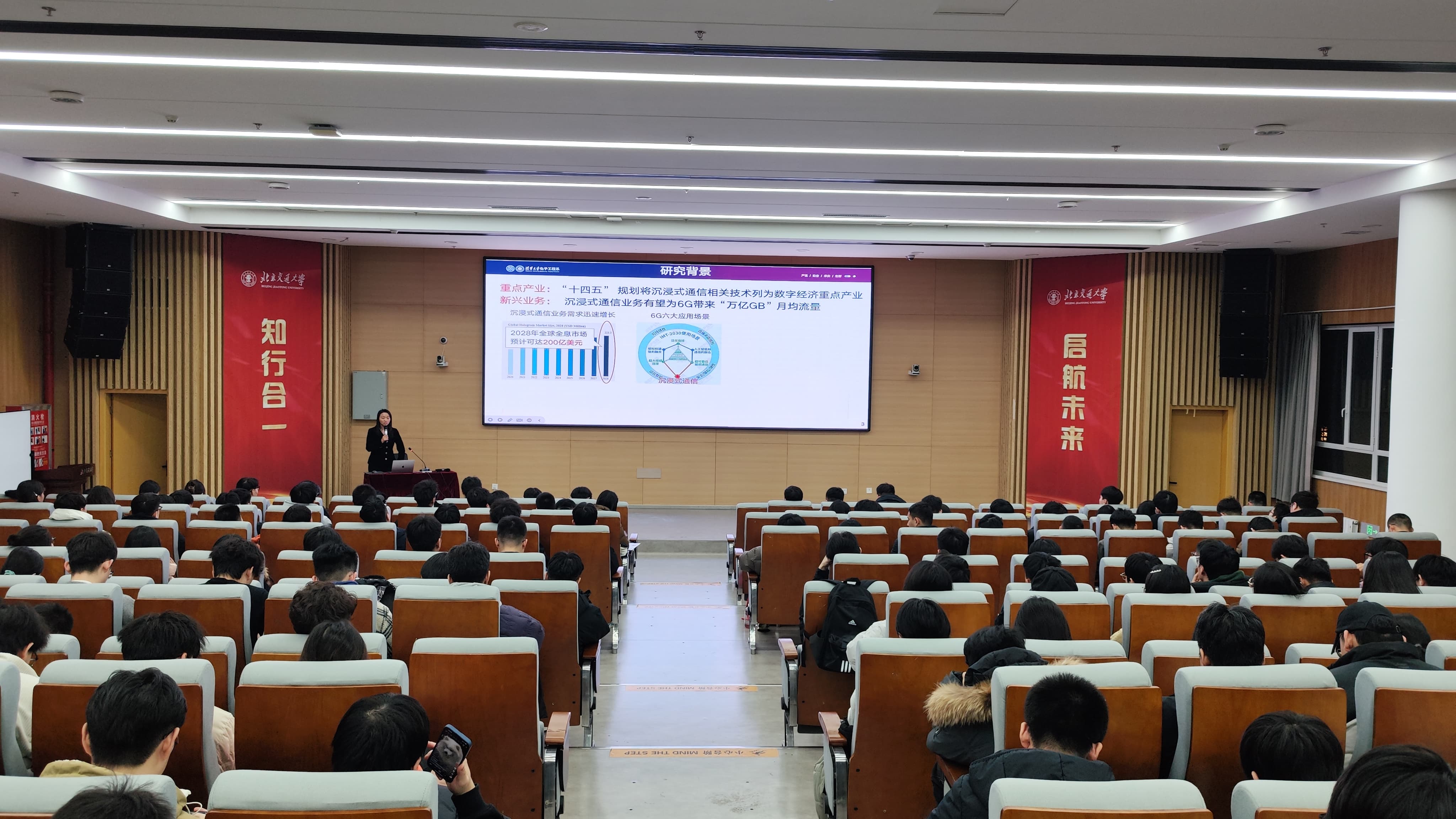 为拓展研究生学术视野,促进各学院学术资源共享,12月24日,电信学院在唐山研究院知行楼报告厅举行“求实”论坛系列学术讲座,特邀清华大学电子工程系副教授、博士生导师、2021年国家级青年人才秦志金老师担任主讲嘉宾,带来题为《语义驱动的沉浸式通信》的前沿学术报告,电信学院副书记、副院长刘留主持讲座。电信学院、智能学院、计算机学院等280余名在唐研究生到场聆听讲座。