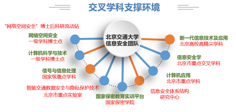 团队拥有“网络空间安全”一级学科博士点,“网络空间安全”博士后流动站,信息安全国家级一流本科专业建设点和保密技术北京市一流本科专业建设点;2019年获批北京市高精尖学科——“新一代信息技术--数据安全与隐私保护”学科方向;拥有智能交通数据安全与隐私保护技术北京市重点实验室。