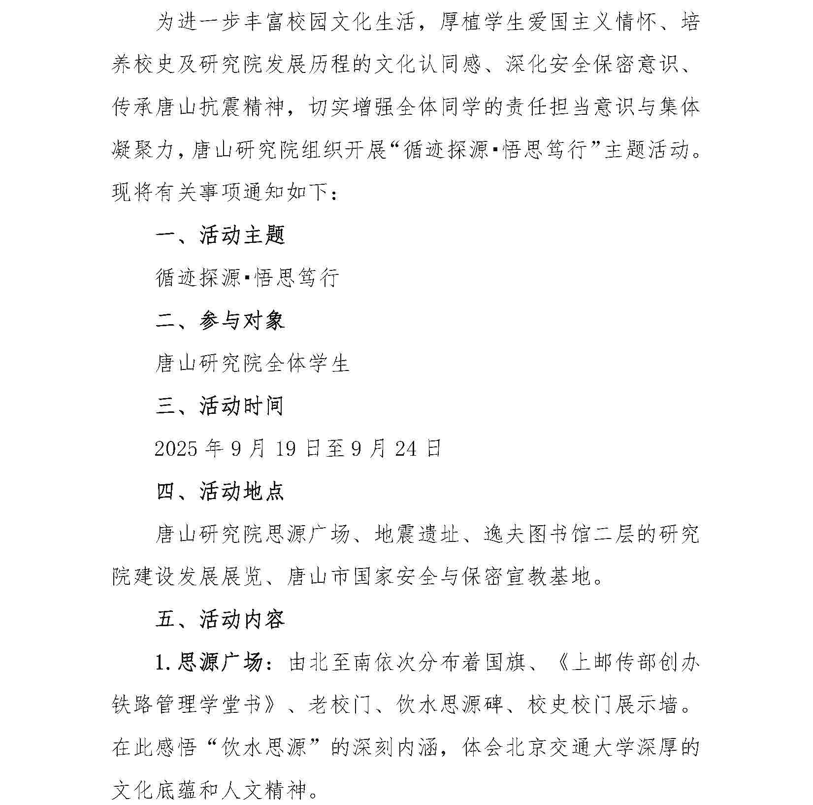 关于开展唐山研究院第二届学生文化体育节系列活动的通知