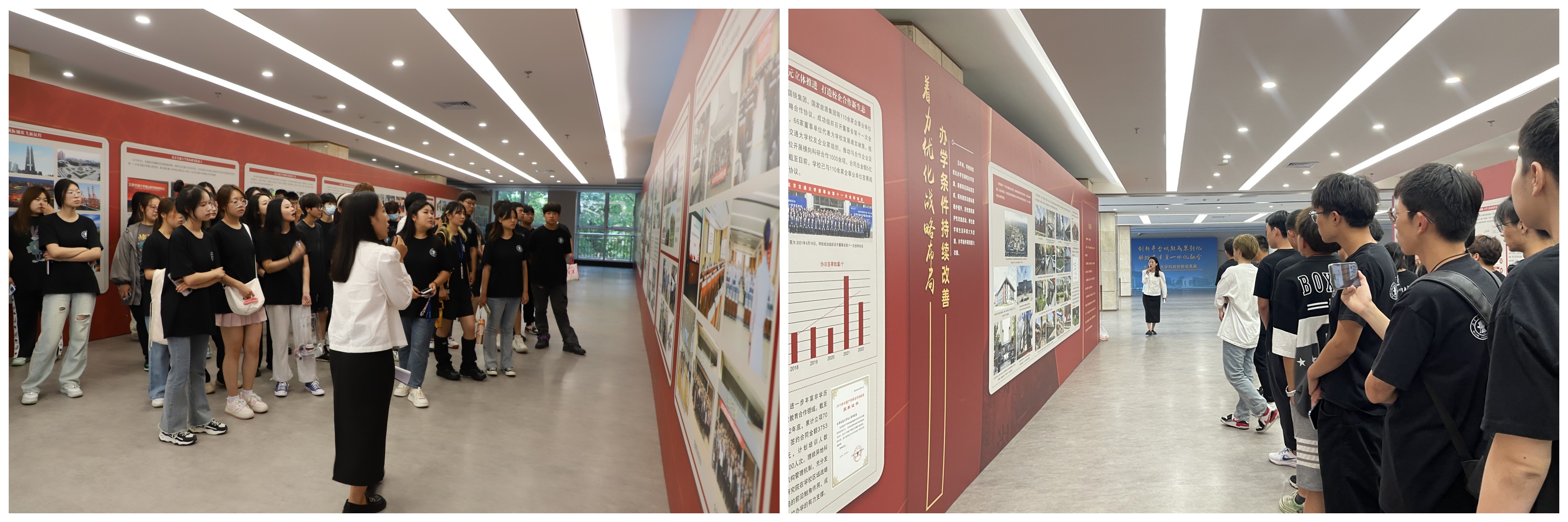 9月11日下午,学生工作部组织了2023级新生参观学校和研究院创新发展成果展,由学生辅导员任金芝担任讲解员。同学们跟随着讲解员的脚步,一幕幕满载历史回忆与成绩的画卷呈现在同学们面前,学校的每一步成长都在历史的长卷中熠熠生辉。此次活动切实帮助2023级新同学了解学校发展历程和办学成就,引导同学们增强饮水思源、爱国荣校的思想,更好地走近学校、了解学校、融入学校。