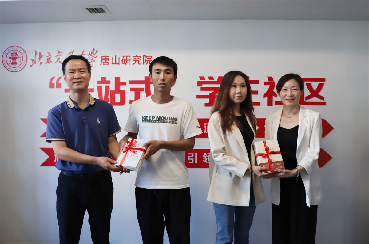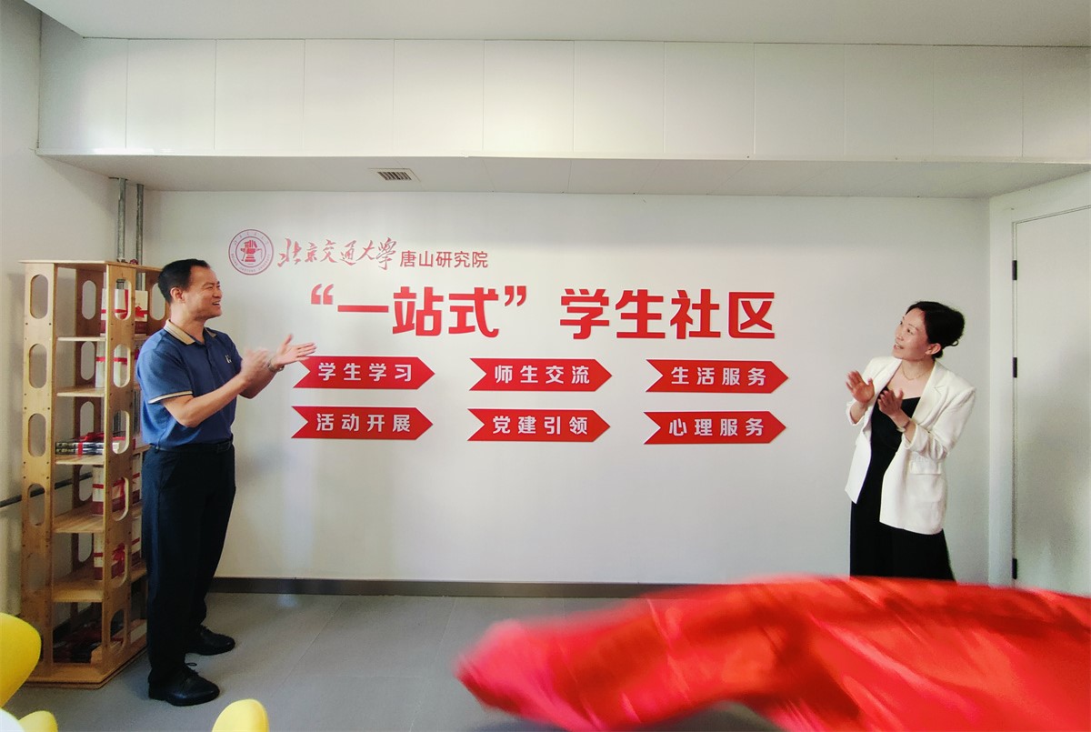 唐山研究院“一站式”学生社区工作室正式启用,研究生工作部部长刘燕和唐山研究院副院长董敬祝共同为工作室揭牌,研工部向工作室赠书表达祝贺。