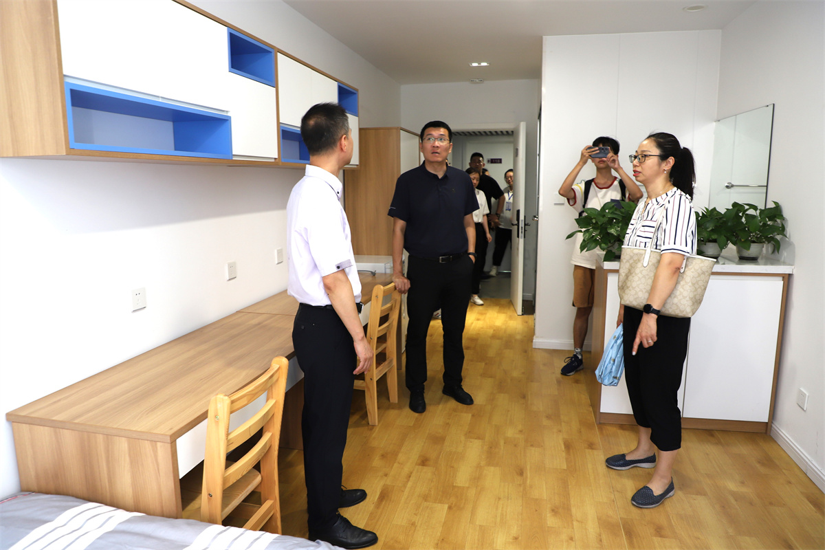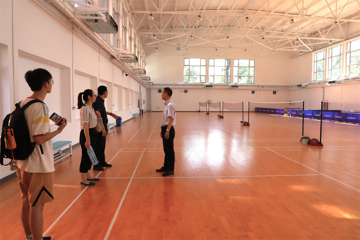 魏炜、郭祎华一行实地走访了研究生入住公寓房间、公共区域、配套设施,室内外羽毛球、篮球、乒乓球、网球、足球场馆,思源楼B座1至7层办公室学生工位,思源广场、天佑会堂、国家安全与保密宣教基地、综合服务楼学生餐厅、教学楼教室、学生活动室、报告厅等研究院基础设施建设情况,并与学生交流沟通,详细考察研究院后勤保障服务能力、来唐学生感受和需求,对一站式社区建设、学生党团及社团建设工作提出指导建议。调研中,魏炜表示校团委将把多彩活动带到唐山,充分利用园区基础设施,丰富在唐研究生的课余文化生活。