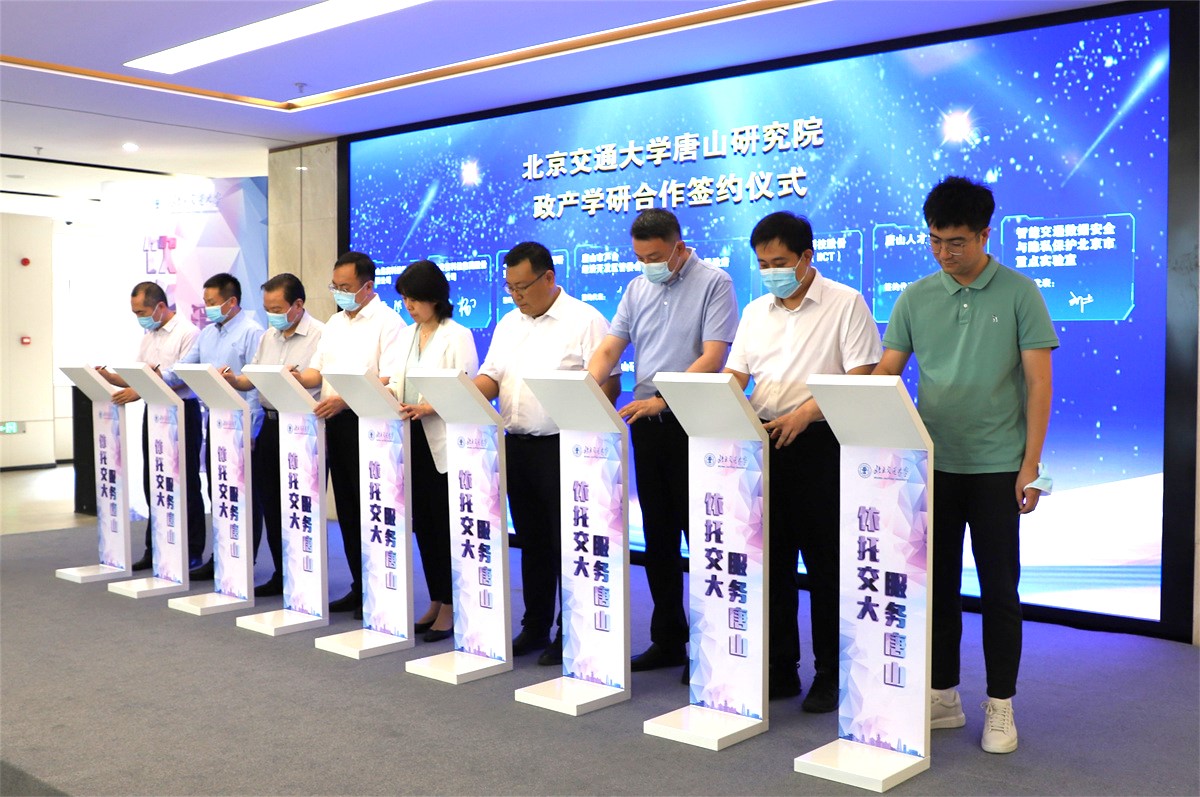6月20日,唐山研究院举行河北省合作共建科技平台示范基地和重点实验室揭牌暨产学研合作签约仪式。校党委书记王稼琼与河北省委常委、唐山市委书记、唐山军分区党委第一书记武卫东出席仪式并共同为重点实验室揭牌。校党委常委、副校长高亮,唐山市委副书记、市长田国良出席活动并致辞。唐山研究院院长王大勇主持活动。唐山市委副书记张旭,唐山市委常委、秘书长陈宇,唐山市政府副市长张月仙,北京交通大学党委常委、学校办主任姚念龙,北京交通大学教授李孟刚,唐山市委办、市政府、市委组织部、政研室、督察室、国安办、保密机要局、发改委、教育局、科技局、工信局、人社局、住建局、城管局、交通局、市场监管局、商务局、中车唐车公司、路南区委、丰润区委、芦台经开区主要负责同志参加活动。