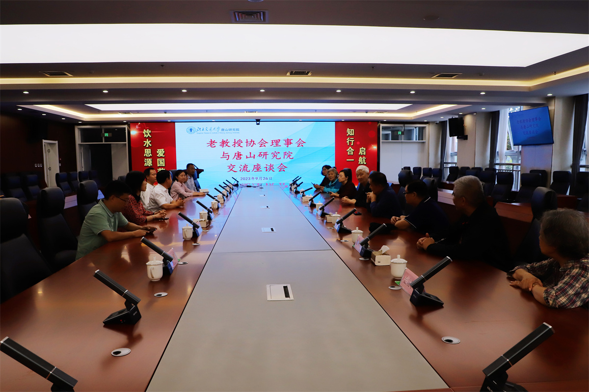 双方在逸夫图书馆学术报告厅座谈。王大勇介绍了唐山研究院院区设施、团队建设、科学研究、产学研融合、人才培养、学术交流等情况。老教授协会理事会对唐山研究院取得的工作成果表示肯定,加深了了解,希望研究院事业蓬勃发展、越来越好。