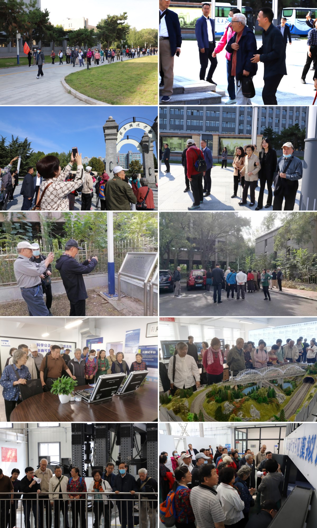 老教授们参观了思源广场、老校门、饮水思源碑、地震遗址等院内景观,了解教学楼、餐厅、运动场馆、图书馆等基础设施建设情况,实地考察机电科创园区的结构强度检测国家认证/认可实验室、轨道交通新材料产业化技术实验室,思源楼B座高速铁路网络管理教育部工程研究中心、软件评测实验室,详细了解实验室建设、团队建设、成果应用等具体情况。