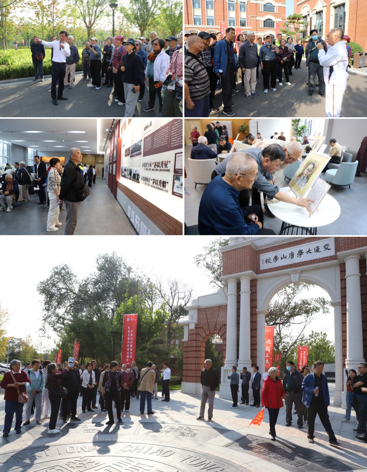 随后,老教授协会一行在西南交通大学唐山研究院党委书记刘伟,院长吴刚,党委副书记、副院长梁思颖及院班子全体成员陪同下参观交通大学唐山园区老校址。西南交通大学唐山校友会会长岳清明进行了现场讲解,老教授们畅叙两校悠久历史渊源,回顾两校建设发展过程中血脉交融的深厚友情,参观老校长茅以升先生主题展览,共同追忆交大时光。