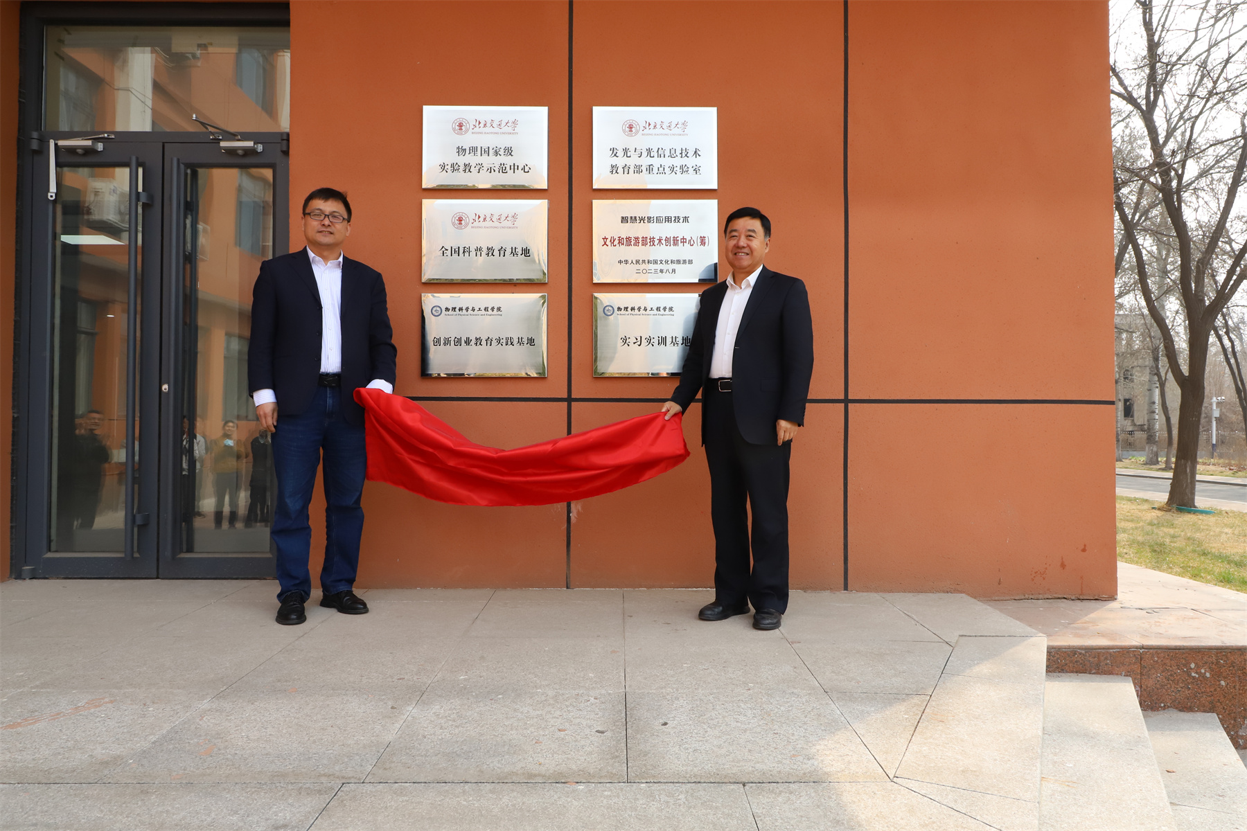 仪式上,丁鹏玉、王大勇共同为物理科学与工程学院协同创新平台揭牌,唐爱伟、王大勇共同为创新创业教育实践基地、实习实训基地揭牌。