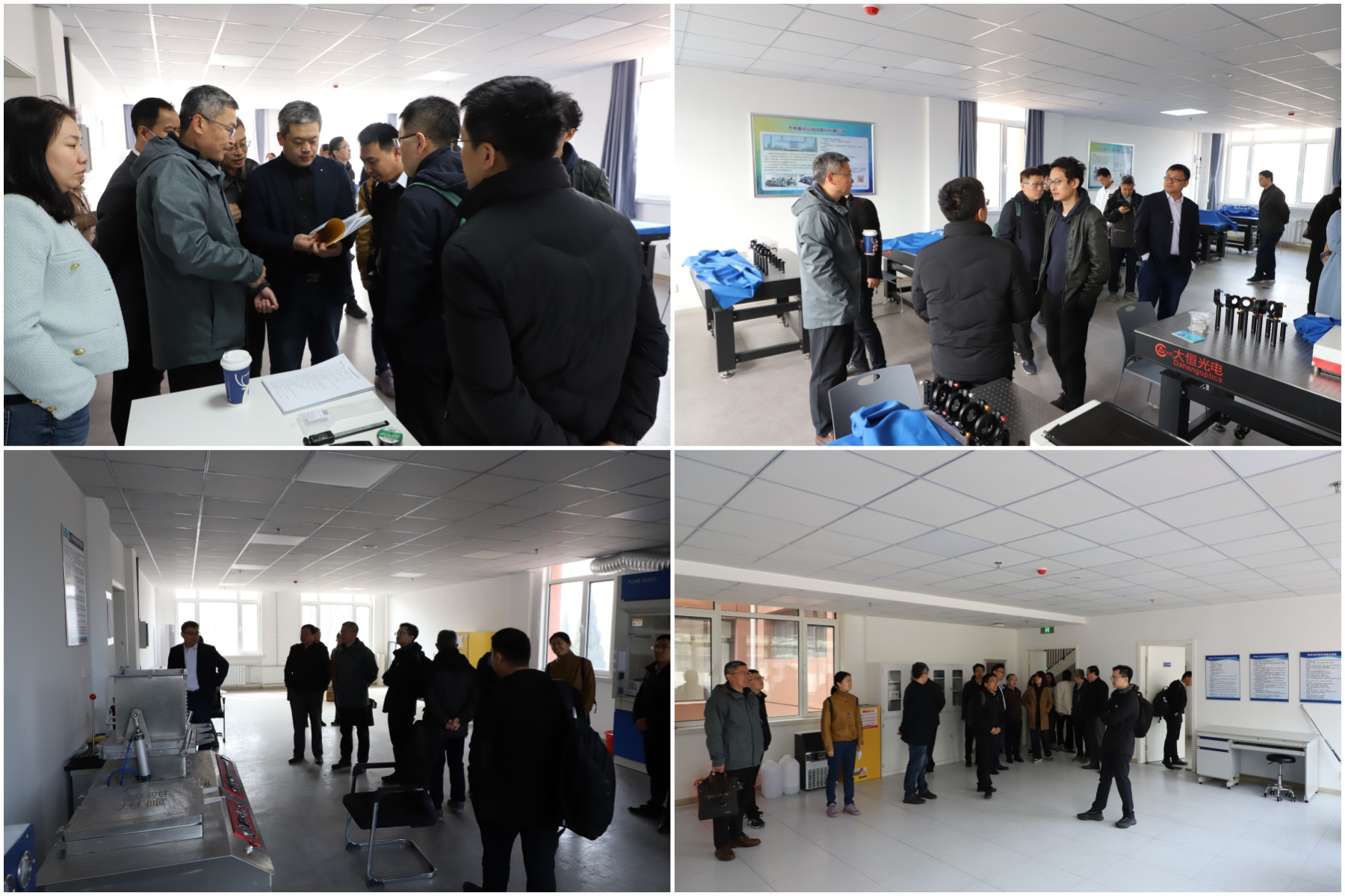 揭牌仪式后,物理科学与工程学院领导及系所主要负责人详细考察了学院在唐实验室建设使用情况和科研进展,就空间分配、功能设置、实验设备和办公设施等问题进行讨论。