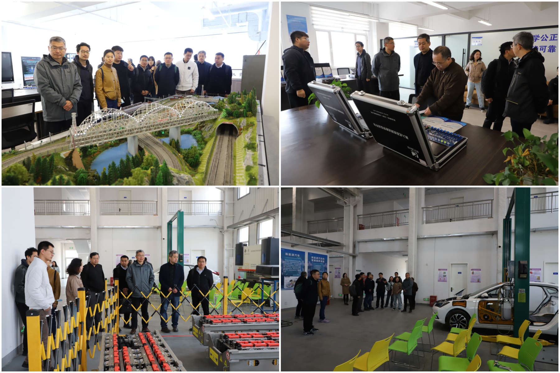 物理科学与工程学院一行还参观了思源楼B座的高速铁路网络管理教育部工程研究中心、软件评测实验室,电气工程实验楼的电池检测实验室、整车教学实验场所,以及地震遗址、公寓、餐厅、体育馆等院内设施景观。
