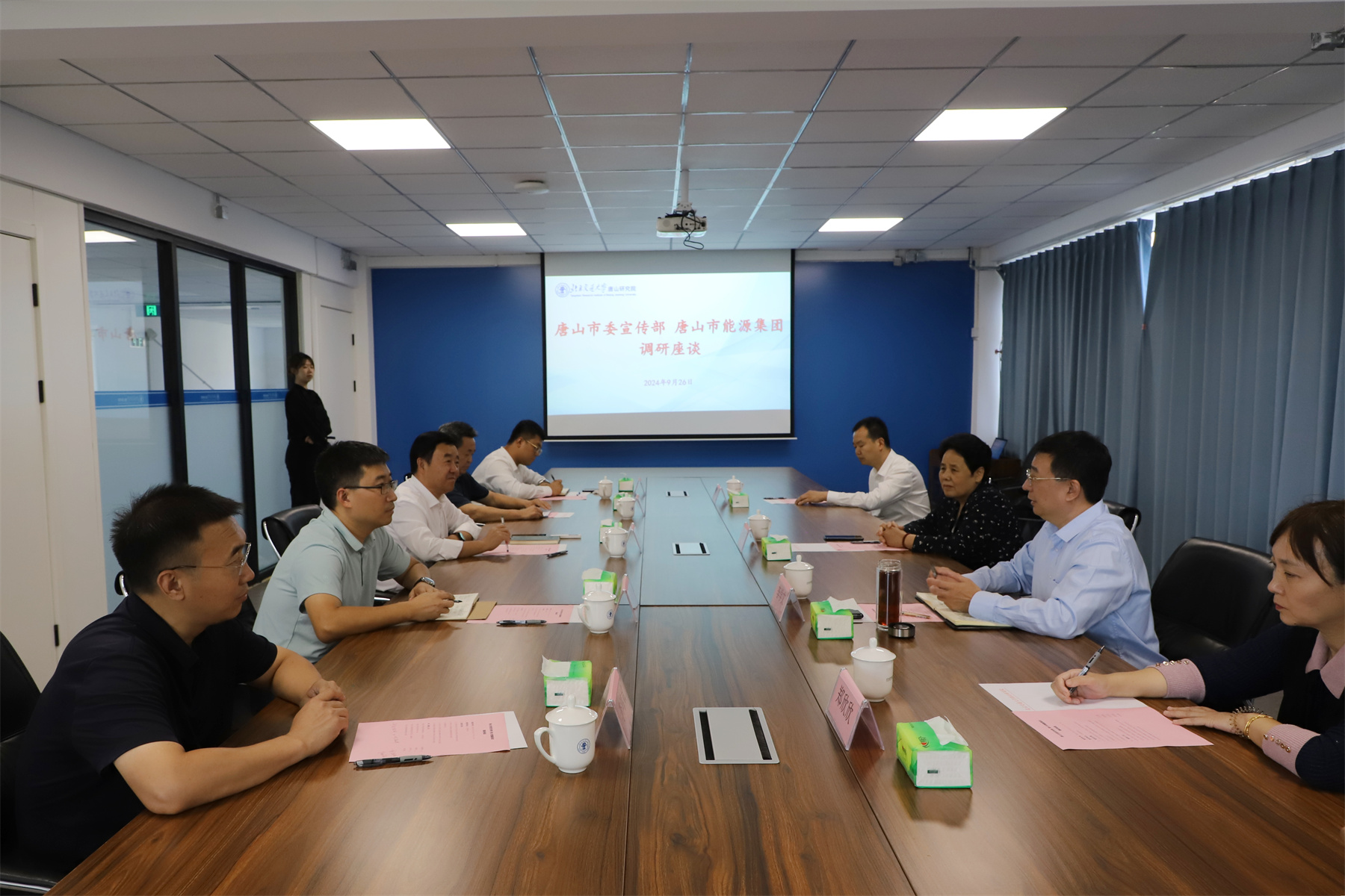 9月26日下午,唐山市委宣传部二级巡视员张梅艳,唐山市能源集团党委书记、董事长李学文,副总经理郑欣欣一行来到唐山研究院调研座谈,围绕储能技术前沿发展、校企合作实际需求展开深入探讨。唐山研究院院长王大勇、院长助理李佳智,河北省碳达峰碳中和研究会唐山工作委员会相关负责同志陪同调研座谈。