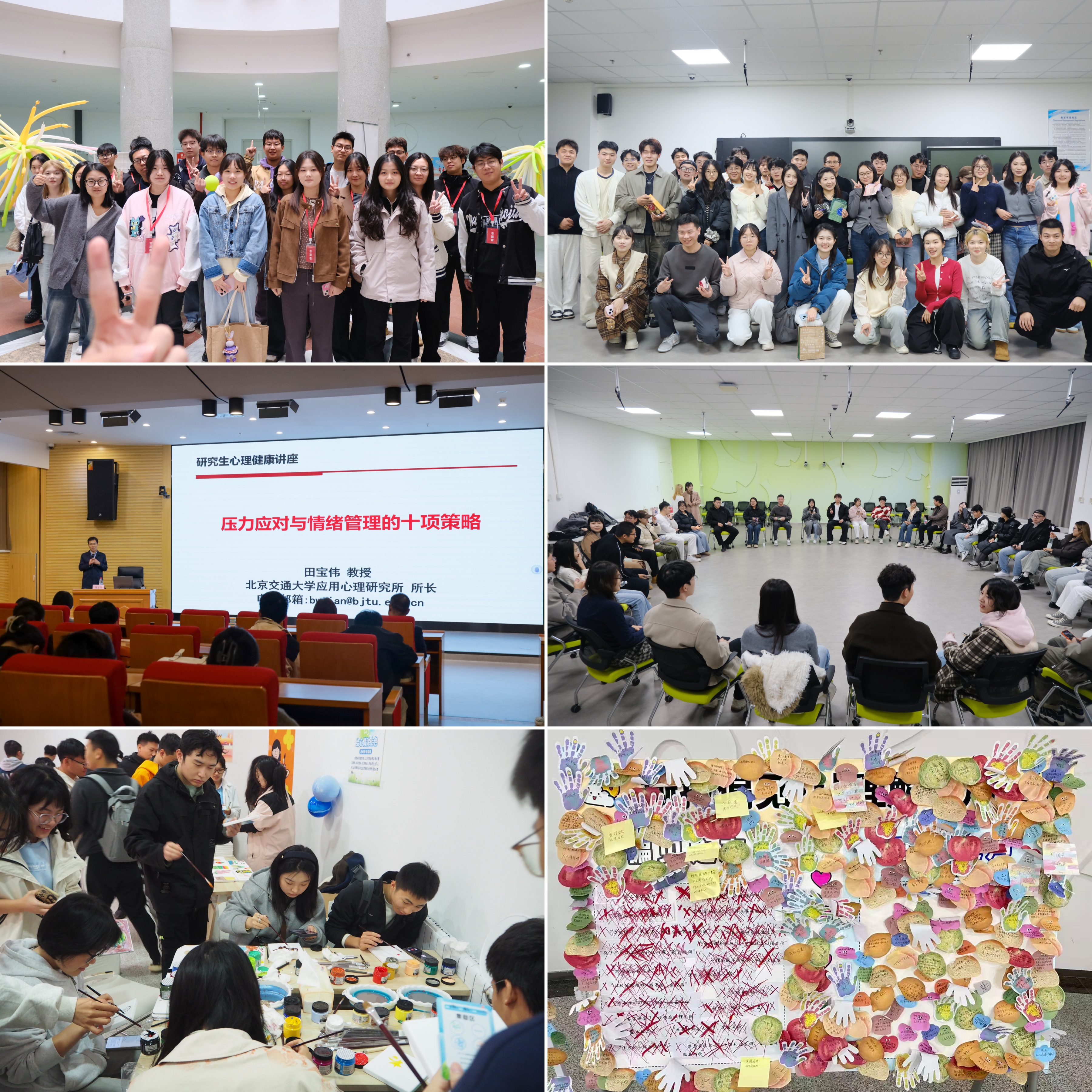 研究院以实践活动为载体,着力营造积极向上的心理健康氛围。心理体验集市中,500余名学子在趣味互动中,将“与心同行,共享心服务”的理念悄然植入心田;心理专家田宝伟教授“压力应对与情绪管理”的讲座,为研究生们送上了一套实用的“心理工具箱”;“缘起初冬 怦然心动”单身联谊活动,用温情与欢笑为同学们搭建情感交流桥梁……接连不断的精彩活动将心理健康教育从“被动说教”转变为“沉浸式体验”,让大家在欢声笑语中享受心理健康服务。