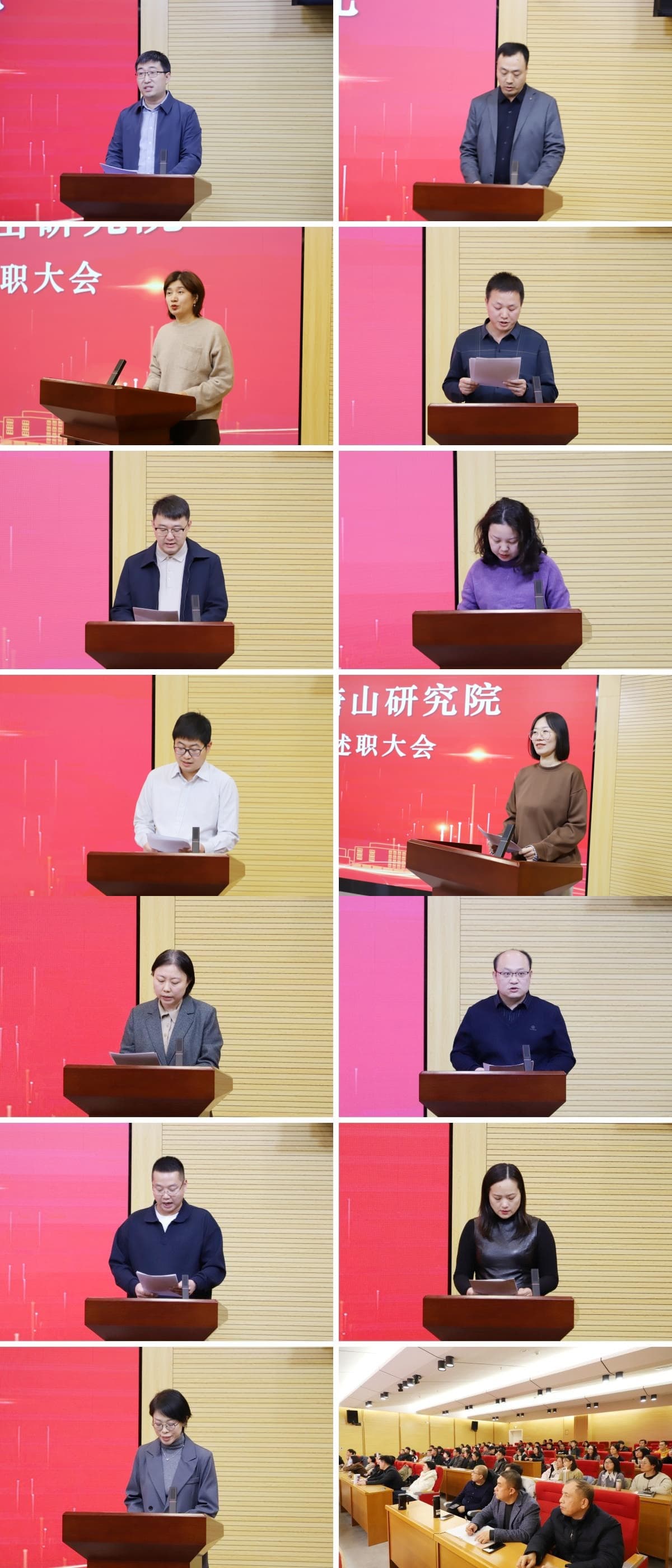 13位部门负责人作部门工作总结汇报并进行个人述职,回顾和总结本部门2025年度工作完成情况和2026年度工作安排。部门副职、中心主任、教职工述职内容丰富,用详实的数据、具体的项目、生动的事例汇报全年工作。