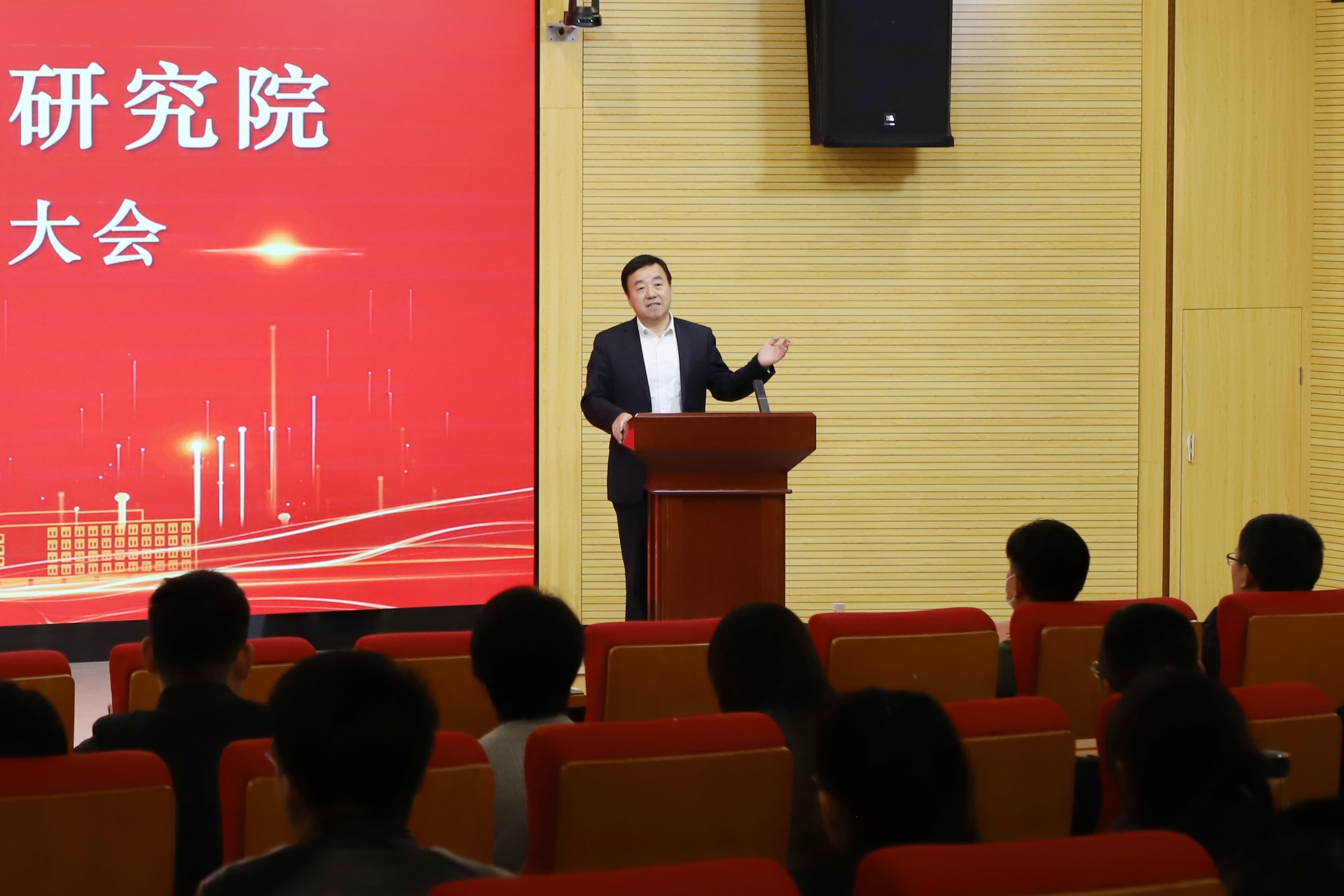 唐山研究院党委书记、院长王大勇作总结发言,充分肯定各部门和各位教职工的工作,感谢大家的付出和努力,并简要介绍了明年主要工作和研究院“十五五”发展规划,要求全体教职工守住廉洁底线和安全底线,希望在今后的工作中进一步强化队伍建设、提升团队素质、优化管理结构,为2026年和“十五五”期间研究院发展奠定坚实基础。