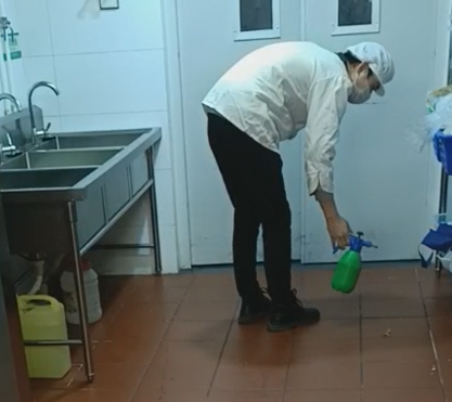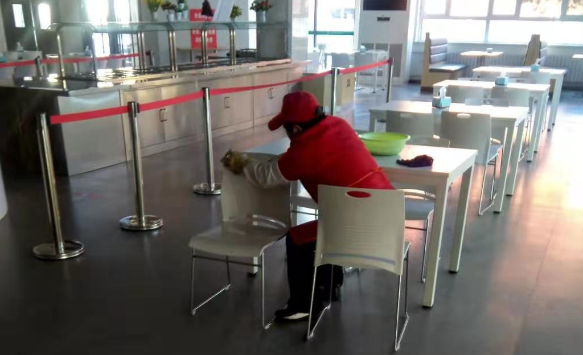 总务办餐饮服务管理中心严格落实餐厅工作人员持证上岗制度,做好餐厅员工人员晨检及体温检测;要求餐厅员工集中入住员工宿舍,实行统一封闭管理,每天进行必要的消杀工作,确保住宿环境达到防疫要求。