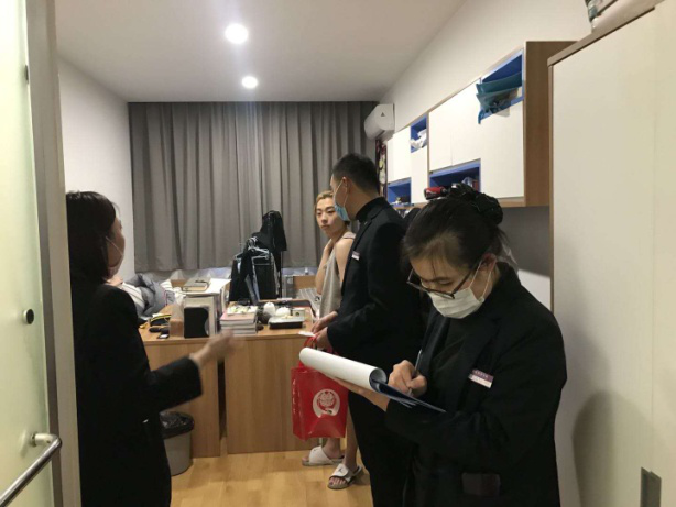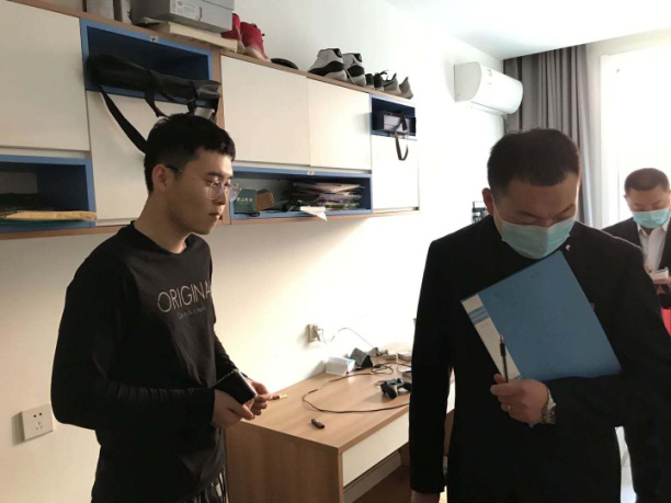公寓管理中心在此期间加强门禁管理,非住宿人员一律不得进入宿舍。要求每一位进入宿舍的师生必须佩戴口罩并进行体温检测,体温检测合格者登记后方可进入。宿管人员对体温检测异常的师生立即安排单独区域进行隔离观察休息并第一时间向防疫小组汇报。