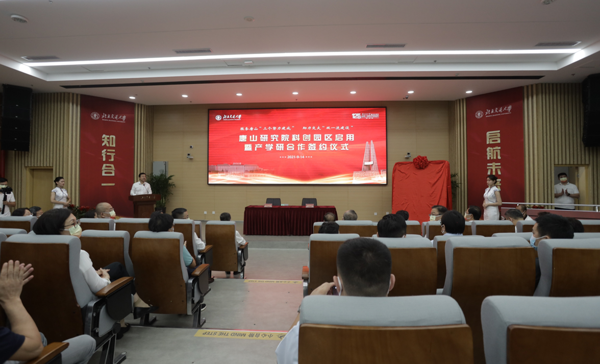 2021年9月14日下午,唐山研究院隆重举行科创园区启用、实验室揭牌暨产学研合作签约仪式。校党委书记黄泰岩与河北省委常委、唐山市委书记张古江出席仪式并共同为入驻唐山研究院科创园区的重点实验室代表揭牌。校党委常委、副校长关忠良出席并致辞。唐山市委副书记、市长田国良,唐山市委常委、市委秘书长陈宇,副市长张月仙,市政府二级调研员孙友树,市教育局局长史林友、市科技局局长刘宏杰等出席仪式。我校唐山研究院院长王大勇主持仪式。