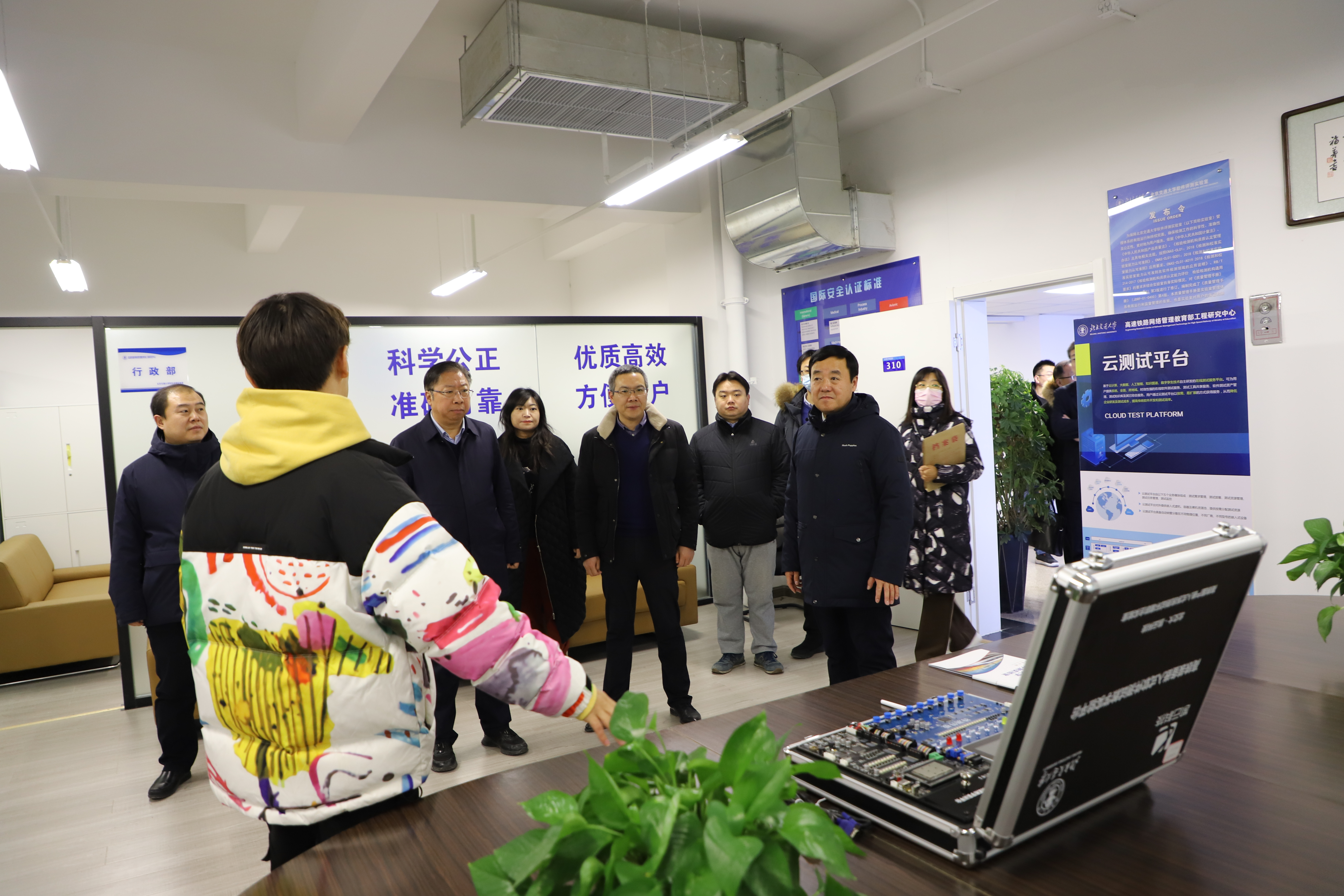 研讨会后,与会领导实地参观了思源楼B座高铁网管教育部工程研究中心和软件评测实验室。