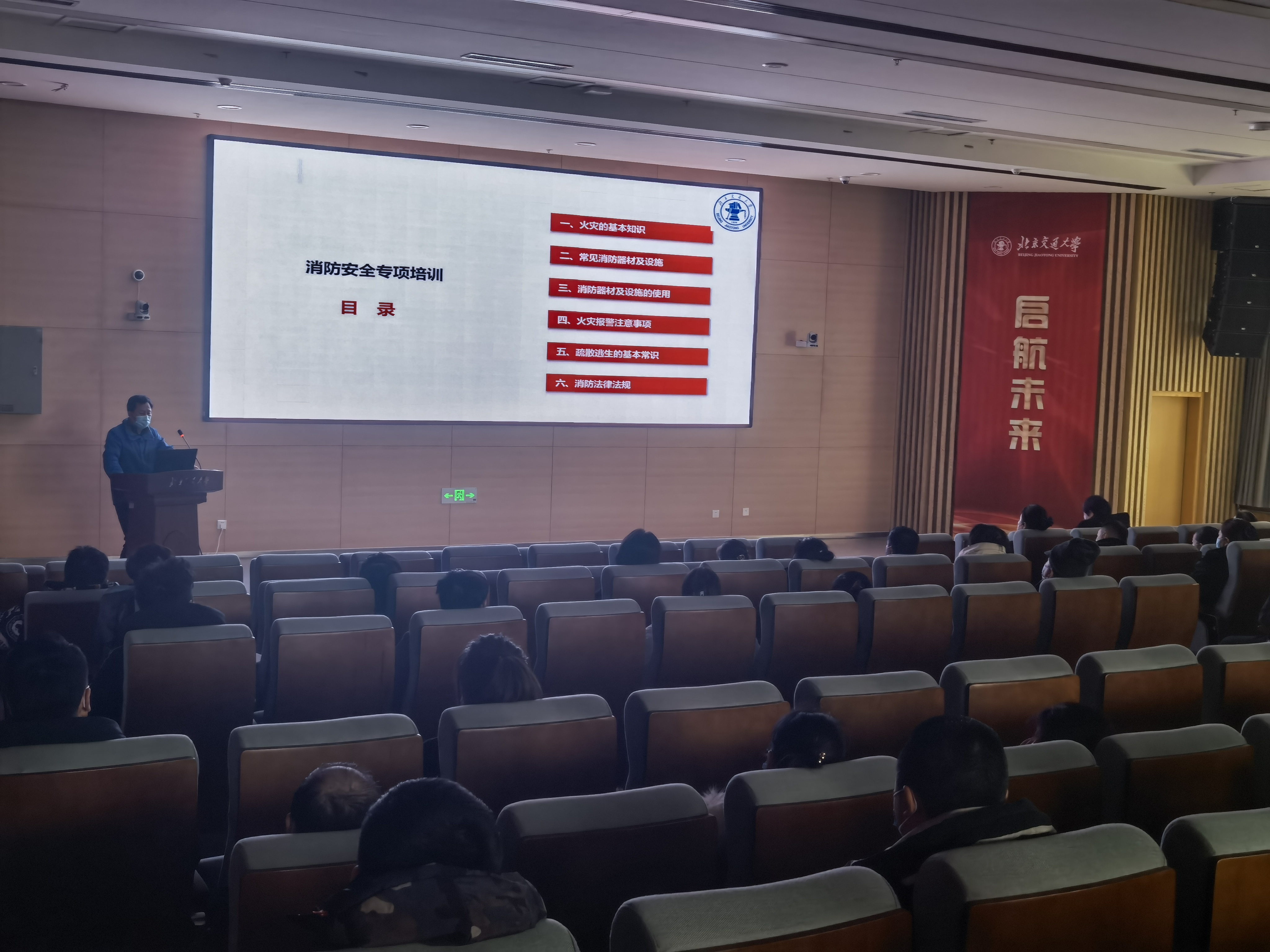 培训分为安全知识讲座和灭火器实操两部分。安稳办安保中心李强老师结合火灾案例视频,进行消防安全警示教育,并就火灾的基本知识、消防器材及设施的使用、火灾报警注意事项、疏散逃生的基本常识、消防法律法规进行了详细讲解。