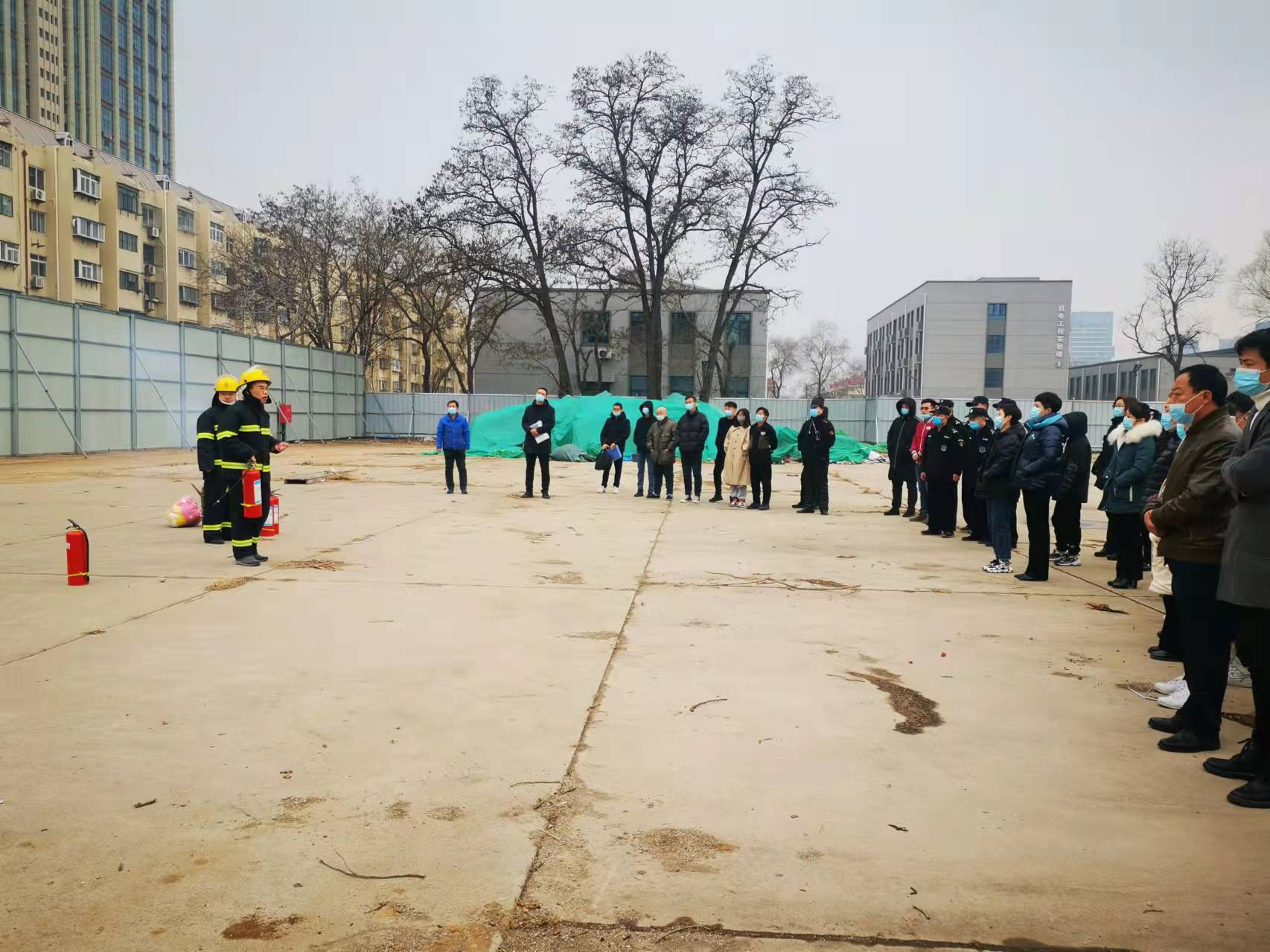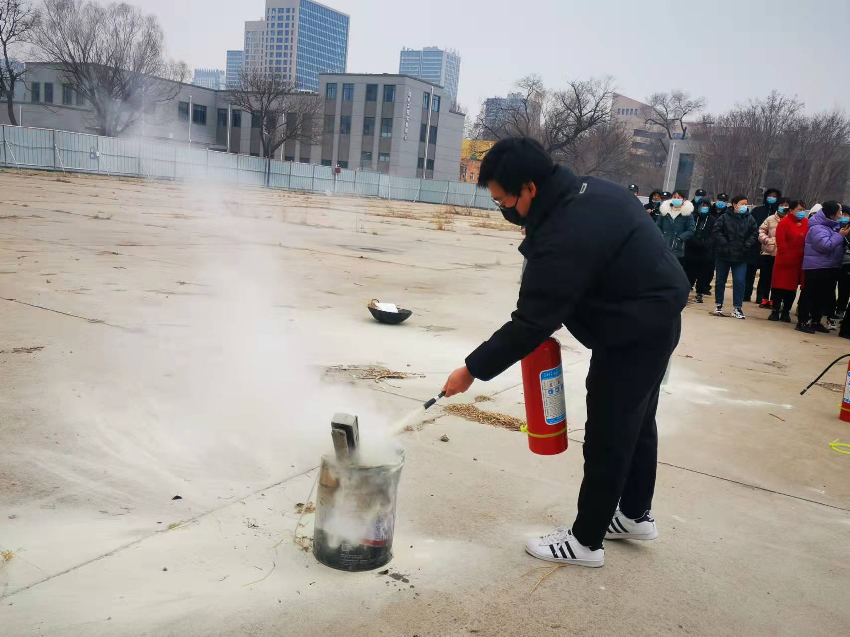 安稳办消防控制室刘刚为参加培训的人员现场演示并讲解手提式干粉灭火器的使用方法,指导培训人员进行灭火器的实操体验。
